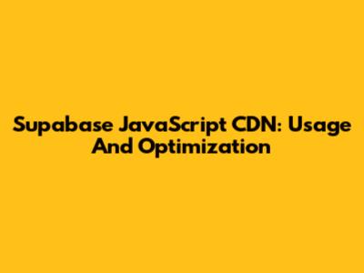 Supabase JavaScript CDN: Usage And Optimization
