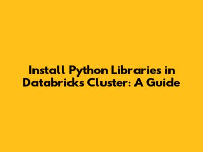 Installing Python libraries in a Databricks cluster is a common task for data scientists and engineers. Databricks clusters provide a scalable and managed environment for running data-intensive applications, and often, these applications rely on specific Python libraries. Whether you're working with data manipulation, machine learning, or any other Python-based task, knowing how to properly manage your cluster's Python environment is essential. This guide will walk you through the various methods to install Python libraries in your Databricks cluster, ensuring your environment is perfectly set up for your projects.