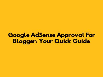 Google AdSense Approval For Blogger: Your Quick Guide