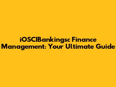 The Role of iOSCIBankingsc in Finance Management