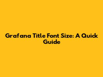 Grafana Title Font Size: A Quick Guide