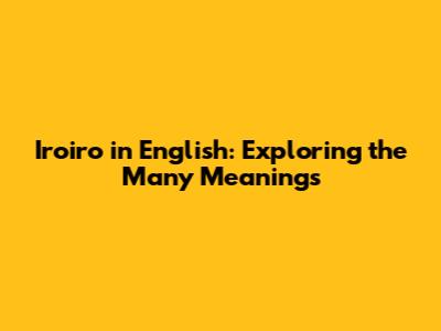 Hey guys! Ever stumbled upon the Japanese word iroiro and wondered, "What in the world does that mean?" Well, you're in the right place! We're gonna dive deep into the fascinating world of iroiro (いろいろ) and uncover its various meanings in English. It's one of those handy Japanese words that can be super versatile, popping up in all sorts of conversations. So, buckle up, and let's unravel the mystery of iroiro, and learn how to use it like a pro. This guide will help you understand and use it effectively in your Japanese conversations, making you sound more fluent and natural. Understanding this word is crucial for anyone looking to improve their Japanese language skills and communicate more effectively.