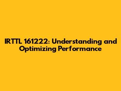 Hey guys, let's dive into the nitty-gritty of IRTTL 161222. This isn't just some random string of characters; it's a key identifier that unlocks a whole world of information, especially if you're dealing with specific technical components, datasets, or even experimental results. Understanding what IRTTL 161222 represents is the first step towards harnessing its full potential. Whether you're a seasoned pro or just starting out, grasping the context behind this identifier can save you a ton of time and effort. We're going to break down its significance, explore common scenarios where you might encounter it, and most importantly, give you the lowdown on how to optimize performance related to it. So, buckle up, because we're about to demystify IRTTL 161222 and make it work for you!