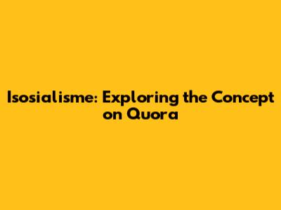 Let's dive into the fascinating world of isosialisme and see what the buzz is all about on Quora. If you're scratching your head, wondering, "What exactly is isosialisme?" you're in the right place. We're going to break it down, explore its core principles, and see how people are discussing it on platforms like Quora. So, grab a cup of coffee, and let's get started!