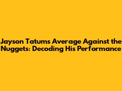 In conclusion, analyzing Jayson Tatum's average against the Nuggets requires a comprehensive approach, considering various factors beyond just the raw numbers. From defensive schemes to team dynamics, these elements all contribute to his performance. As he continues to develop, his future matchups against the Nuggets will undoubtedly be ones to watch.