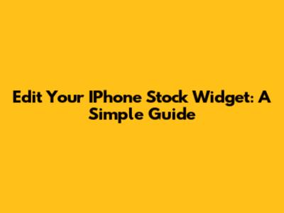 Edit Your IPhone Stock Widget: A Simple Guide