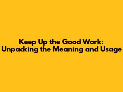 Hey guys! Ever heard someone tell you to "keep up the good work"? It's a phrase that floats around pretty often, but what does it actually mean? And, more importantly, how do you use it correctly? Don't worry, we're going to break it down, step by step, so you can understand it and start using it like a pro. This article will be your go-to guide for understanding the meaning, its nuances, and how to effectively integrate this common phrase into your everyday conversations. We will explore the various contexts where this phrase shines, offer examples, and even touch upon some alternatives you can use to spice up your communication. Let's dive in and demystify "keep up the good work"!