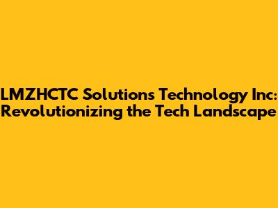 Hey guys! Ever heard of LMZHCTC Solutions Technology Inc.? If not, buckle up, because you're about to dive into a world of innovation, cutting-edge technology, and solutions that are changing the game. In today's fast-paced digital era, companies like LMZHCTC are the driving force behind progress, and understanding their mission, services, and impact is more crucial than ever.