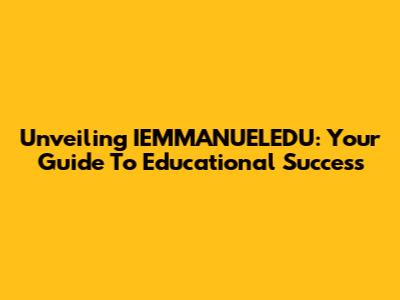 Unveiling IEMMANUELEDU: Your Guide To Educational Success