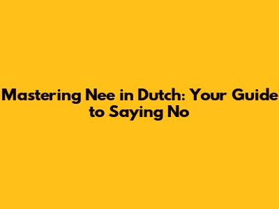 Hey guys! Ever found yourself in a situation where you needed to politely decline something in Dutch but weren't quite sure how? Don't worry, you're not alone! Saying "nee" (no) is a fundamental part of the Dutch language, and mastering it, along with a few polite variations, is key to navigating everyday conversations. This guide will walk you through the nuances of saying no in Dutch, helping you feel confident and comfortable in various scenarios. We'll cover everything from the basic "nee" to more sophisticated and polite ways to decline requests, invitations, and offers. So, let's dive in and get you speaking Dutch like a pro!