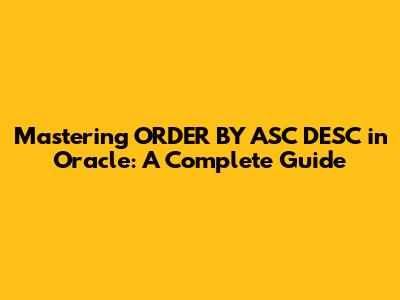 Alright, let's start with the fundamentals. The ORDER BY clause in Oracle SQL is used to sort the result set of a query. By default, the sorting is done in ascending order (ASC), meaning from the smallest value to the largest for numeric data, or alphabetically for text data. However, sometimes you need to see the data in reverse order, from largest to smallest, or from Z to A. That's where DESC comes in. It stands for descending order, and it's your go-to option when you want to flip the sorting.