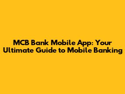 What is the MCB Bank Mobile App, and Why Should You Use It?