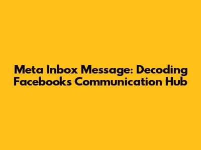 Hey everyone! Have you ever gotten that little notification from Meta Inbox on Facebook and wondered, 'What's this all about?' Well, you're not alone! It can seem a bit confusing at first, but don't worry, we're going to break down everything you need to know about messages from Meta Inbox on Facebook. From understanding what they are to figuring out how to respond, we'll cover it all. So, grab a coffee (or your favorite drink!), and let's dive into the world of Facebook's communication hub. By the end of this guide, you'll be a pro at handling those Meta Inbox messages! We will talk about what they are, how to identify them, why you get them, and most importantly, what steps to take after receiving a message. Whether you're a seasoned Facebook user or just starting out, this guide will provide you with all the essential information to navigate your Meta Inbox messages like a pro. Ready? Let's get started!