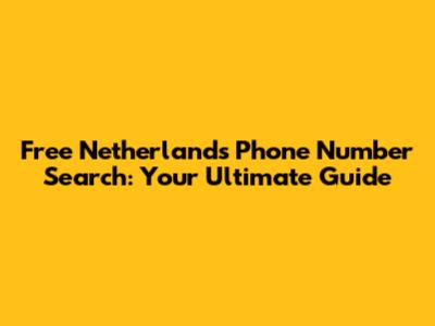 Free Netherlands Phone Number Search: Your Ultimate Guide