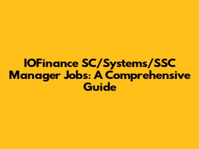 IOFinance SC/Systems/SSC Manager Jobs: A Comprehensive Guide