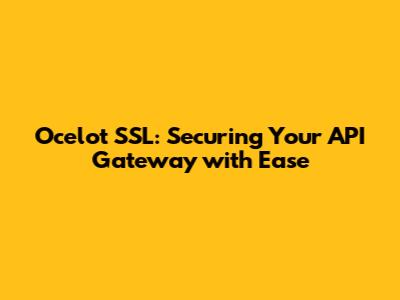 Ocelot SSL is a crucial aspect of securing your API gateway, providing encryption, authentication, and data integrity. It's essential for protecting your application from various security threats, making sure your data remains confidential and your users can trust your services. By implementing SSL/TLS, you create a secure environment where sensitive information is protected from unauthorized access.