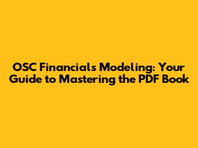 Hey finance enthusiasts, are you ready to dive deep into the world of OSC Financials Modeling? This comprehensive guide is your ultimate companion to understanding and mastering the intricacies of the OSC Financials Modeling PDF book. We'll break down everything from the fundamental concepts to the advanced techniques, ensuring you gain a solid understanding of financial modeling. This isn't just about reading a book; it's about actively engaging with the material, applying the principles, and building your own financial models. So, buckle up, grab your coffee, and let's get started on this exciting journey into the heart of financial analysis. We will discuss the contents of the book in detail, offering insights, practical examples, and tips to help you succeed. The goal here is to transform you from a novice to a confident financial modeler capable of making informed decisions based on solid financial analysis. This is more than just learning; it's about empowerment, providing you with the tools and knowledge to excel in your financial endeavors. This exploration includes the basics such as understanding financial statements, building cash flow models, and also complex topics like scenario analysis and valuation techniques. This guide is crafted to support you through every stage, ensuring you gain the skills needed to create robust and reliable financial models, all while making sure that you understand the OSC Financials Modeling PDF book. The goal is to make sure you succeed!