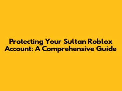 Protecting Your Sultan Roblox Account: A Comprehensive Guide