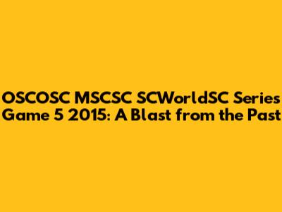 Hey guys, let's take a trip down memory lane and revisit the OSCOSC MSCSC SCWorldSC Series Game 5 from 2015! It's wild to think how much gaming has evolved, but this particular event still holds a special place in the hearts of many. We're gonna dive deep into the highlights, the nail-biting moments, and the overall impact of this epic showdown. Get ready for a nostalgic ride, because we're about to unpack everything that made this game so unforgettable. This was a pivotal moment for both the players and the gaming community as a whole. The tension was palpable, the stakes were high, and the strategies were next-level. This game was more than just a competition; it was a showcase of skill, determination, and the sheer love for the game. This was a major event in the esports calendar, attracting thousands of viewers both online and in person. The atmosphere was electric, with fans cheering their favorite teams and players. The commentary was on point, and the production value was top-notch, which really enhanced the viewing experience. This game really pushed the boundaries of what was possible in competitive gaming. This particular match really brought out the best in everyone involved, from the players to the organizers. The memories of the game are still fresh in the minds of the fans, even after all this time. We will explore the key players, the critical moments, and the overall impact of this unforgettable event. So, buckle up, because we're about to get into it!
