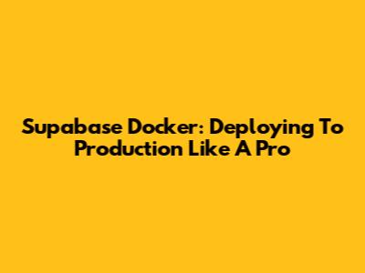 Supabase Docker: Deploying To Production Like A Pro