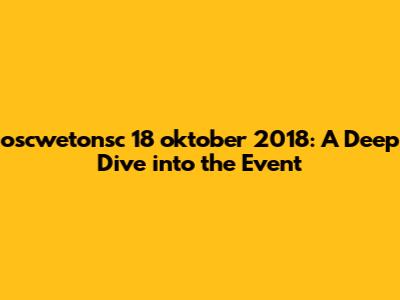 Let's rewind to October 18, 2018, and take a closer look at the oscwetonsc event that took place on that day. This event brought together a diverse group of individuals, each eager to share their knowledge, insights, and experiences. The atmosphere was buzzing with energy, as attendees engaged in thought-provoking discussions, collaborative workshops, and insightful presentations. The primary goal of oscwetonsc was to foster innovation and growth within the community, by providing a platform for exchanging ideas and building connections. The event's agenda was carefully curated to cater to a wide range of interests and skill levels, ensuring that everyone had something valuable to take away.