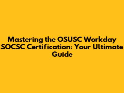 Why You Absolutely Need the OSUSC Workday SOCSC Certification