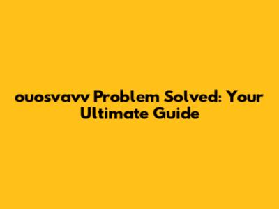 Step-by-Step Solutions: How to Fix ouosvavv