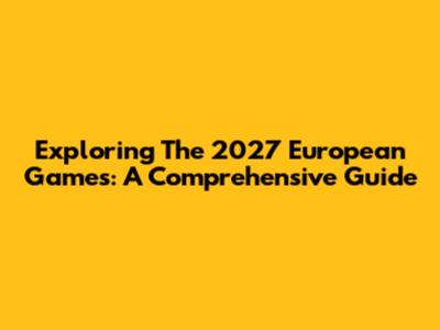 Exploring The 2027 European Games: A Comprehensive Guide