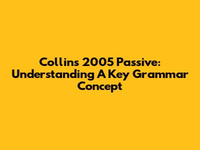 Collins 2005 Passive: Understanding A Key Grammar Concept