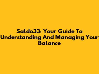 Saldo33: Your Guide To Understanding And Managing Your Balance