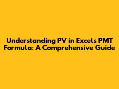 In conclusion, understanding the role of Present Value (PV) in Excel's PMT formula is essential for effective financial planning and decision-making. The pv argument represents the initial amount of a loan or investment, and it directly impacts the calculated payment amount. By grasping the concept of present value and how it interacts with other elements in the PMT formula, you can accurately calculate loan payments, evaluate investment opportunities, and make informed financial choices. Whether you're buying a house, investing for retirement, or simply managing your personal finances, mastering the use of PV in Excel is a valuable skill.