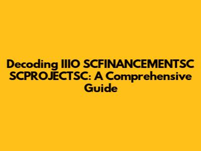 Decoding IIIO SCFINANCEMENTSC SCPROJECTSC: A Comprehensive Guide