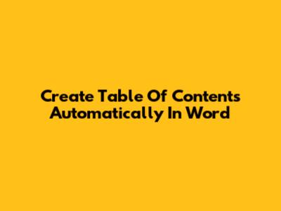 Create Table Of Contents Automatically In Word