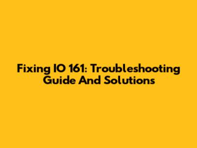 Fixing IO 161: Troubleshooting Guide And Solutions
