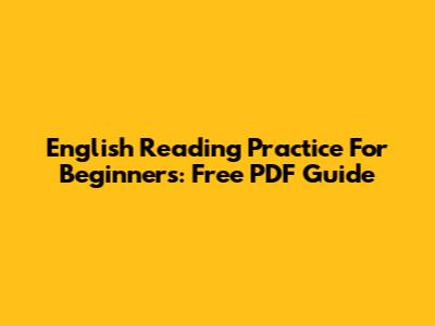 English Reading Practice For Beginners: Free PDF Guide