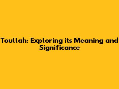 The Significance of Toullah as a Name