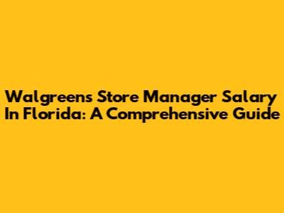 Walgreens Store Manager Salary In Florida: A Comprehensive Guide