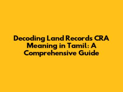 Hey guys! Ever stumbled upon the term "CRA" when dealing with land records in Tamil Nadu and scratched your head? You're not alone! It's a common acronym, but its meaning isn't always crystal clear. This detailed guide is here to break down the meaning of CRA in the context of land records, especially in Tamil. We'll delve into what it stands for, its significance, how it relates to property ownership, and how it impacts you. So, let's dive right in and clear up any confusion you might have! This comprehensive guide will help you understand everything about the land records CRA meaning in Tamil.