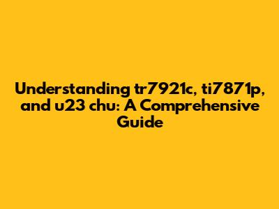 avigating the intricate world of specific identifiers like tr7921c, ti7871p, and u23 chu can often feel like deciphering a complex code. In this comprehensive guide, we'll break down each element, exploring their potential contexts, applications, and significance. Whether you're a seasoned professional or a curious novice, this article aims to provide clarity and insight into these alphanumeric designations.