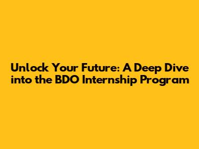 Hey everyone! Ever thought about kicking off your career with a serious bang? Well, the BDO Internship Program might just be the ticket! This isn't your average coffee-fetching gig, folks. We're talking about a real-deal experience where you get to dive headfirst into the world of accounting, tax, and consulting. Let's explore everything you need to know about this awesome opportunity. We'll cover the benefits, the application process, and what you can expect if you're lucky enough to snag a spot. Get ready to level up your professional game! This program is designed to give you a taste of the real world, and to give you an idea of how this process works, how to get started, and more.