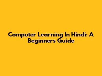 Computer Learning In Hindi: A Beginner's Guide