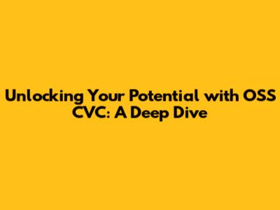 Unlocking Your Potential with OSS CVC: A Deep Dive