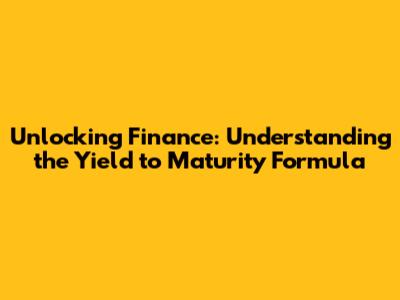 The Yield to Maturity Formula: A Deep Dive