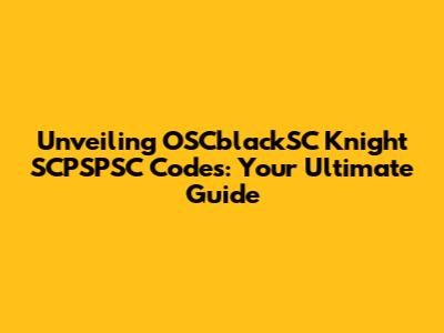 Decoding OSCblackSC Knight SCPSPSC Codes: What Are They?