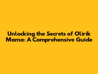 Unveiling the Importance of Olirik Mama