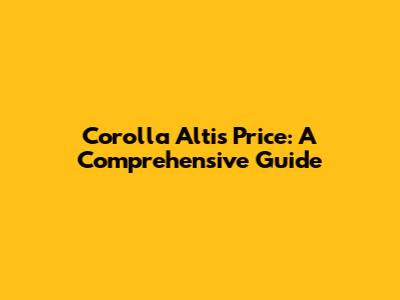 Corolla Altis Price: A Comprehensive Guide