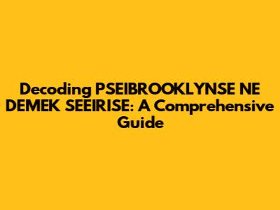 Hey there, fellow knowledge seekers! Ever stumbled upon the phrase "PSEIBROOKLYNSE NE DEMEK SEEIRISE" and found yourself scratching your head? You're not alone! It's a bit of a cryptic riddle, and understanding it can feel like unlocking a secret code. But don't worry, we're going to break it down, piece by piece, to reveal its meaning and significance. This guide is designed to be your go-to resource, offering a comprehensive explanation in a way that's easy to digest. So, buckle up, and let's dive into the fascinating world of PSEIBROOKLYNSE NE DEMEK SEEIRISE, exploring what it means and why it matters.