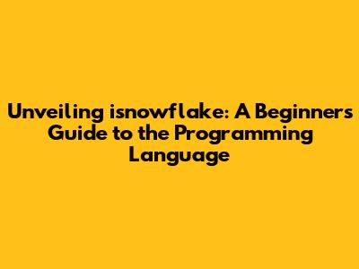 Hey everyone, let's dive into the fascinating world of isnowflake, a programming language that's been making waves! If you're new to coding or just curious about exploring different languages, you're in the right place. In this guide, we'll break down everything you need to know about isnowflake, from its core concepts to practical examples. Get ready to embark on a coding adventure that's both fun and educational! Let's get started. This article is your one-stop resource for understanding isnowflake, even if you've never coded before. We'll explore its features, benefits, and how you can get started, step-by-step. Let's make learning to code a breeze, guys!