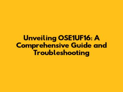 What Exactly is OSE1UF16? Unpacking the Basics