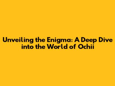 The Mysterious Origins and Meaning of Ochii: Unraveling the Roots